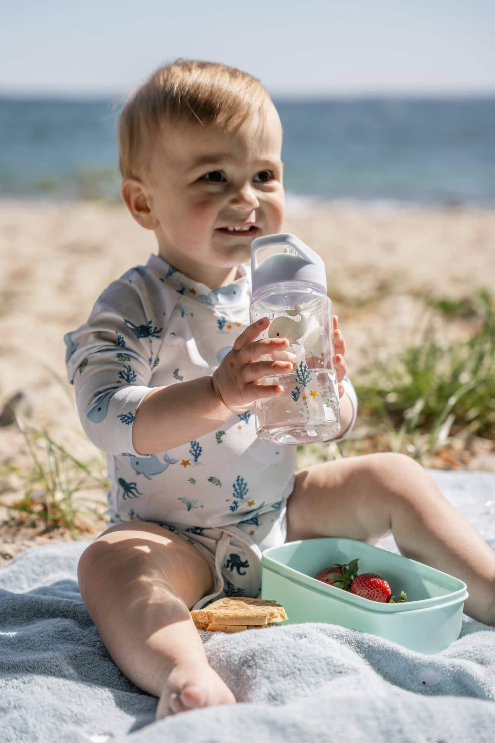 Fľaša je vyrobená z číreho, odolného PET plastu, ktorý je testovaný a schválený pre kontakt s potravinami. Má objem až 400 ml a vďaka transparentnému dizajnu dieťa jednoducho vidí, čo sa nachádza vo vnútri — ideálne pre malé aj veľké každodenné dobrodružstvá.