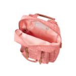 Batoh je ľahký a pohodlný na nosenie, s praktickou priehradkou na fľašu a vonkajším vreckom na drobnosti. Nastaviteľné popruhy sa jednoducho prispôsobia detskému chrbátiku a vrchné rúčky umožňujú pohodlné nosenie v ruke.