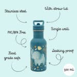 Navrhnutá tak, aby vydržala – detská fľaša SASSI z nehrdzavejúcej ocele s objemom 500 ml je dokonalou kombináciou odolnosti, bezpečnosti a štýlu, vytvorená tak, aby sprevádzala vašich najmenších na všetkých ich dobrodružstvách.