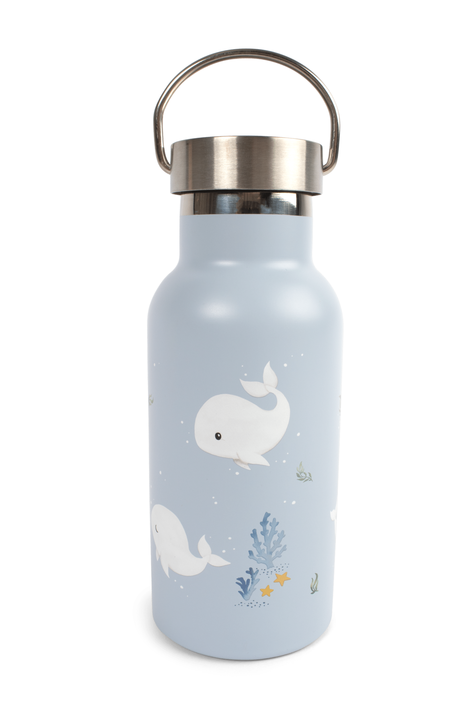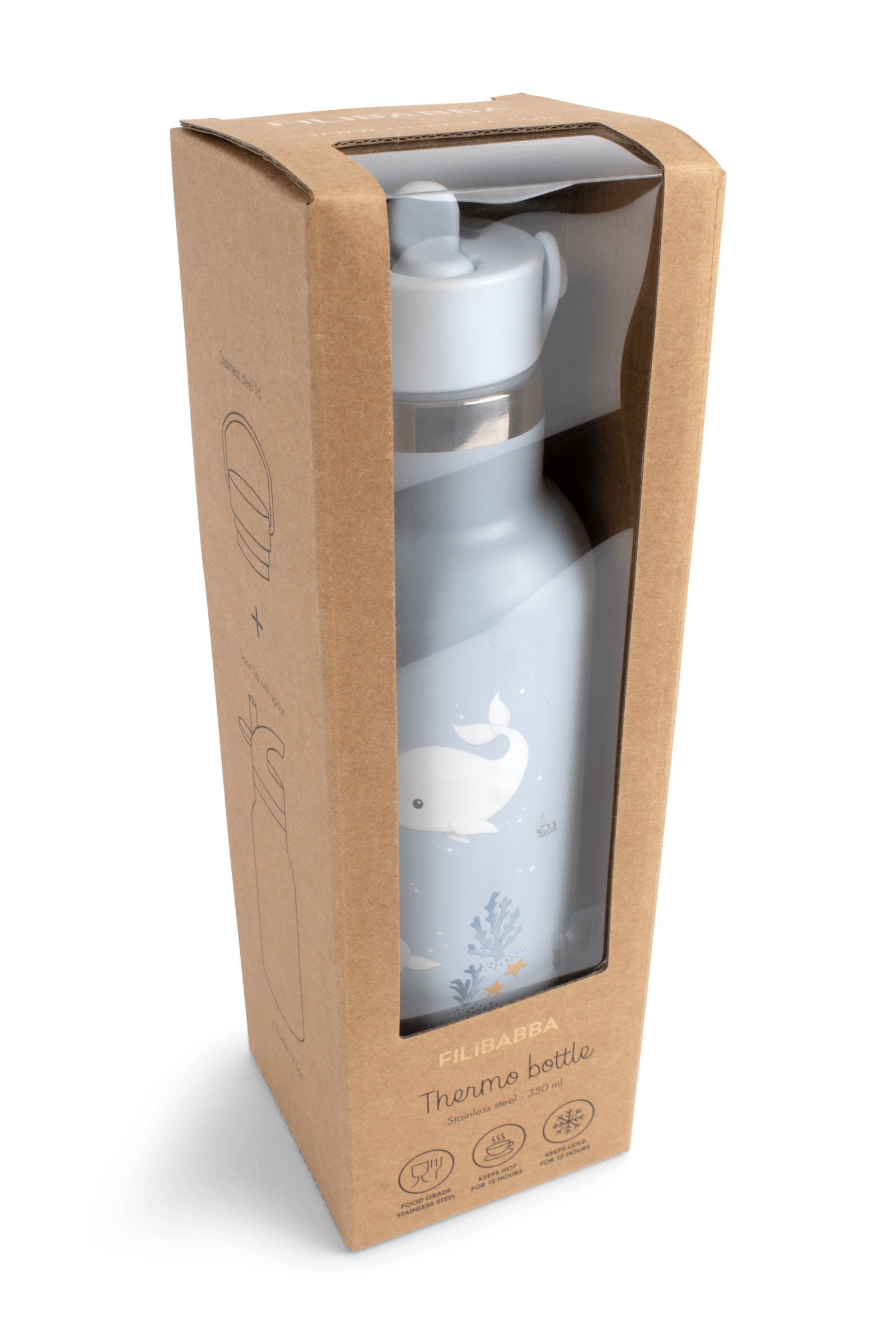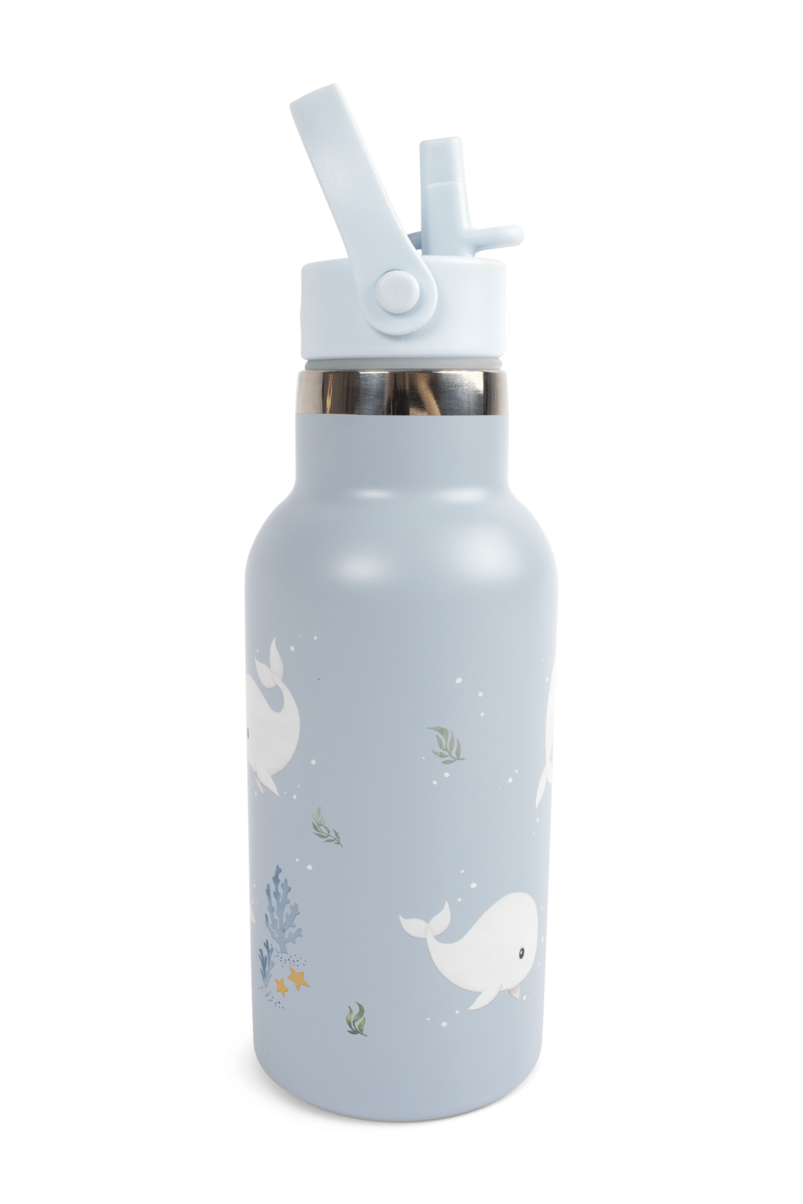 Fľaša obsahuje dve vymeniteľné viečka: klasické skrutkovacie viečko pre bezpečné prenášanie a viečko s integrovanou slamkou, ktoré umožňuje pohodlné pitie na cestách. Vyrobená z nehrdzavejúcej ocele udrží nápoje studené alebo teplé až 12 hodín – ideálne, aby ste mali vždy správnu teplotu, nech vás dobrodružstvo zavedie kamkoľvek. Fľašu odporúčame umývať ručne.