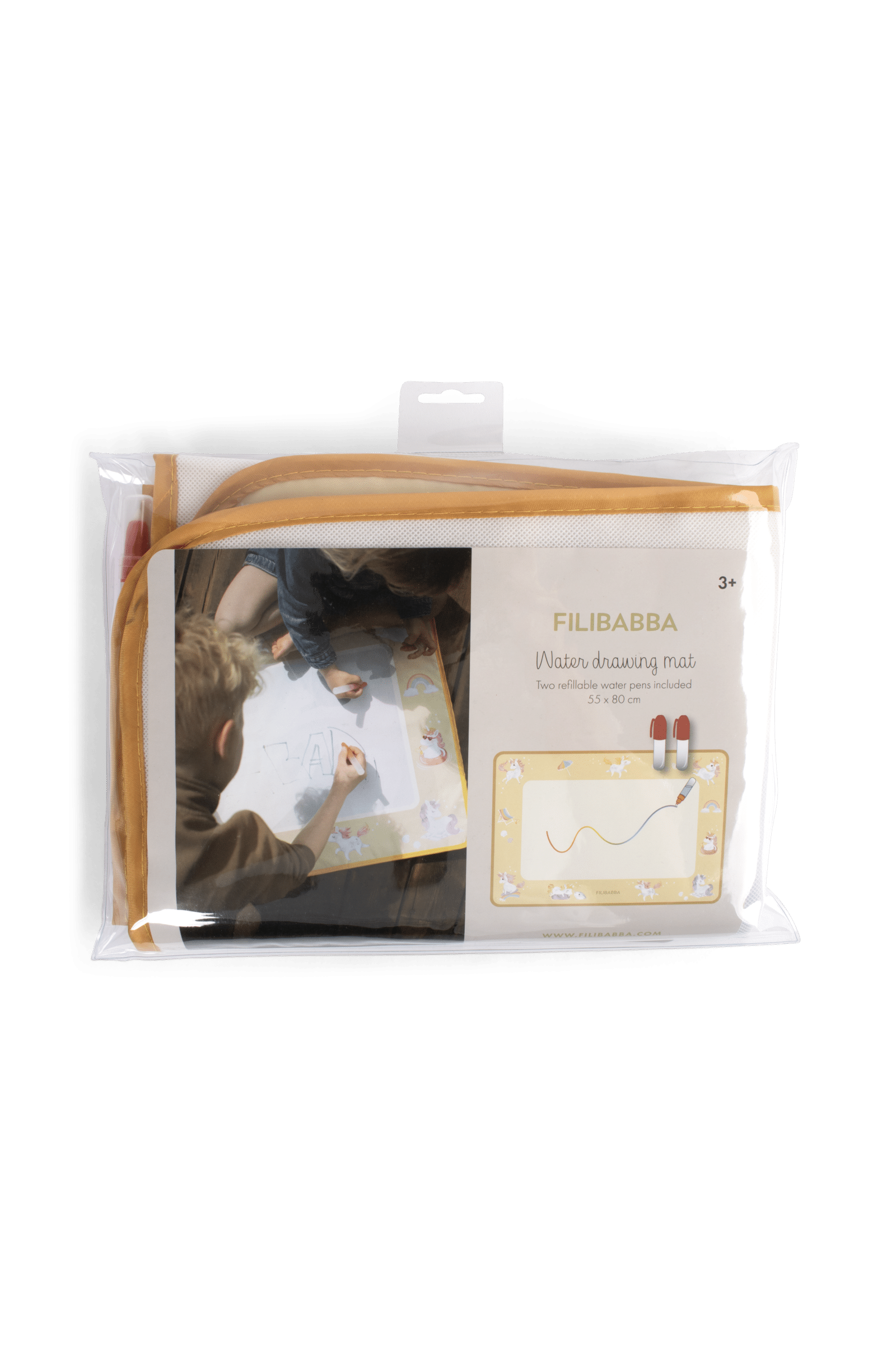 Tichý moment, jemný dotyk vody – a zrazu farby rozkvitnú ako mágiou. Táto snová vodná maliarska podložka umožňuje malým umelcom sledovať, ako ich fantázia ožíva v jemných dúhových odtieňoch – bez neporiadku a škvŕn. Nie sú potrebné farby ani fixky – stačí naplniť jedno z dvoch priložených pier vodou a sledovať, ako sa farby objavujú. Pokojný a hravý spôsob, ako objavovať kreativitu stále dookola.